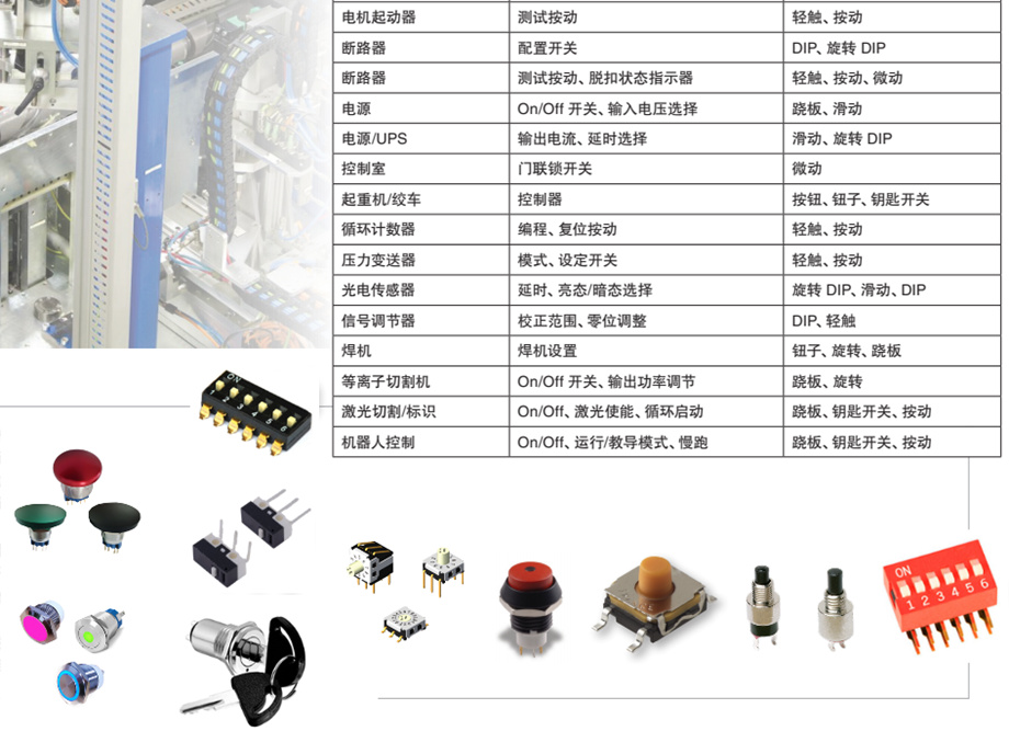 自動化設備的應用在各行各業中, 自動化行業是多變且復雜的行業。從用于先進制造、醫療設備、食品工業、城市建設和維持基礎設施的智能設備, 這些都離不開品類繁多的開關和解決方案來確保其正常工作。整個行業的共同點之一是它們始終需要通過開關、按鈕和控制桿為設備提供動力,這正是德崧(D-SWITCH)的作用所在,我們可靠的高性能優質開關可以幫助自動化工程師迎面任何設計難題。