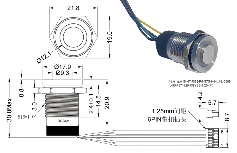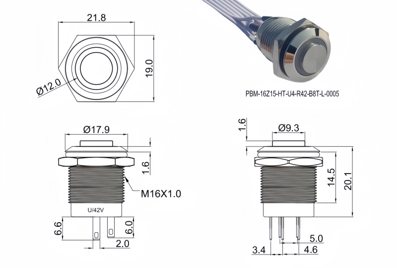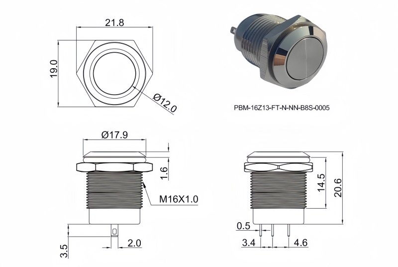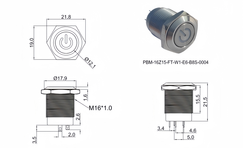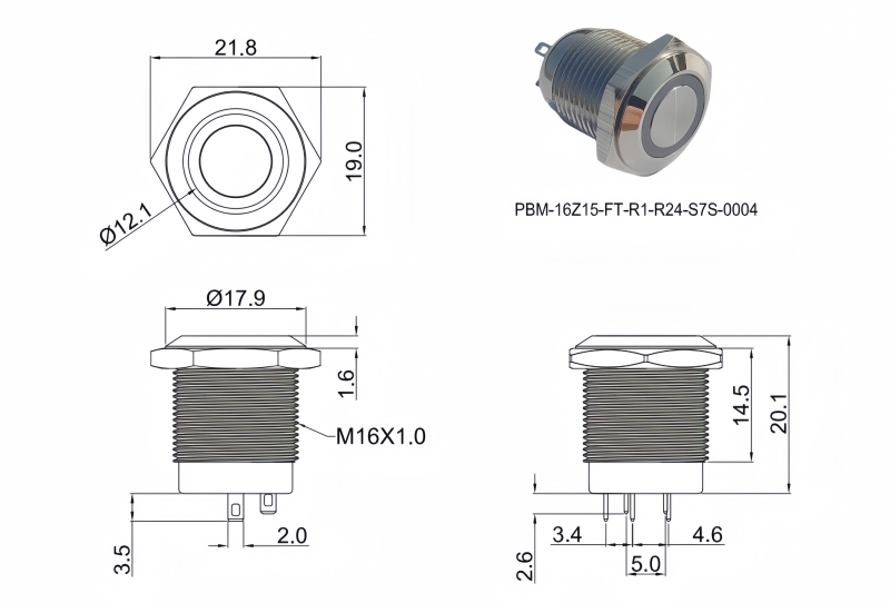 16mm短款金屬按鈕開關