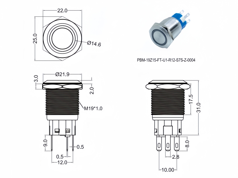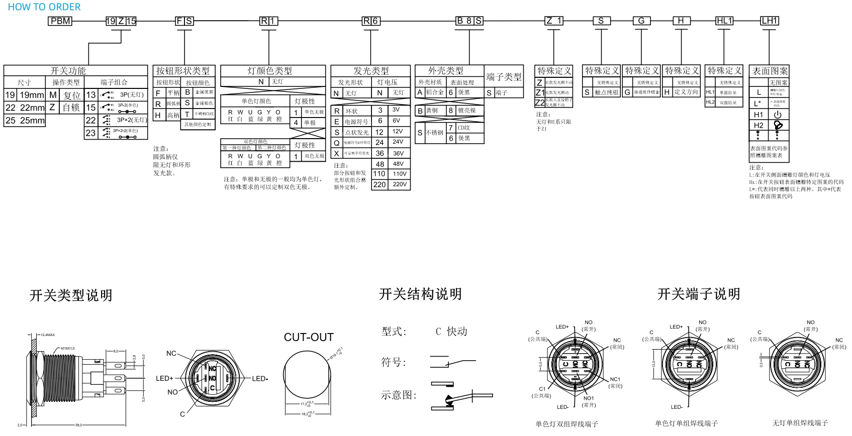 MATERIALS BUSHING : Stainless Steel / Nickel plated brass / Aluminum alloy BASE : PBT, PC ACTUATOR : PC ; Stainless Steel / Nickel plated brass / Aluminum alloy INNER ASSEMBLY : POM / PA66. SPRING : Spring steel. SEALING : Sillicone. O-Ring : Sillicone TERMINAL : Brass,with silver or gold plated. HEX NUT : Nickel plated brass