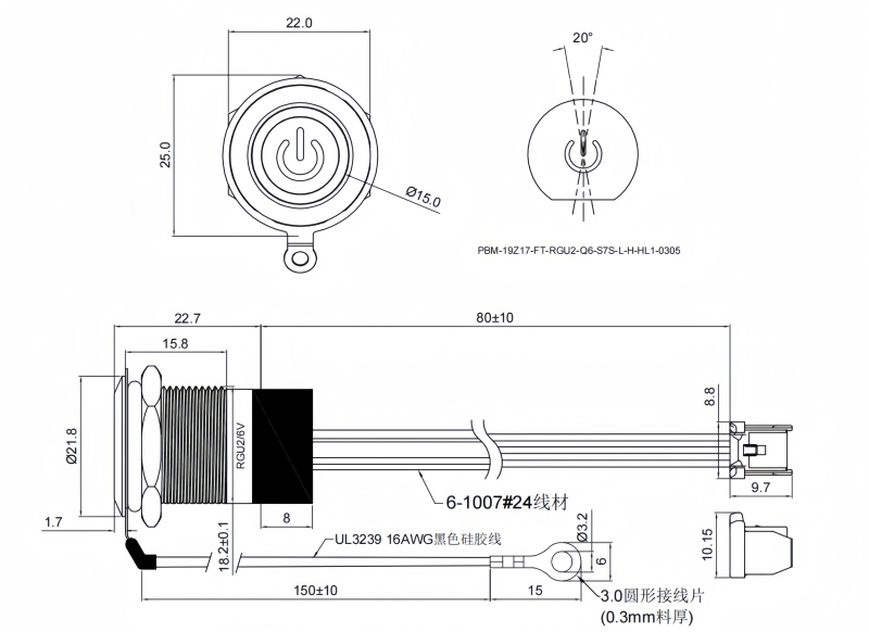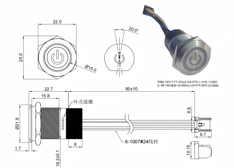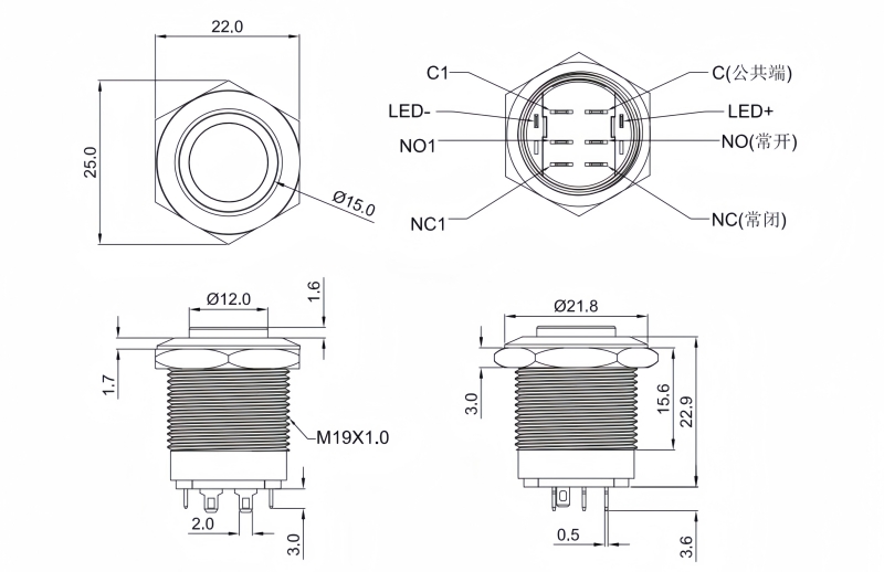 19mm短款金屬按鈕開關(guān)