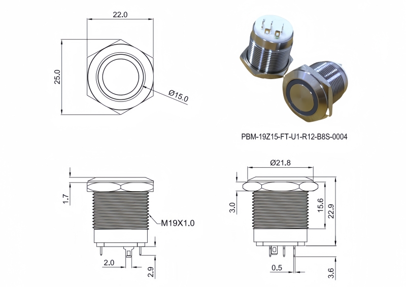 Metal Pushbutton Switches / PBM-19 Series