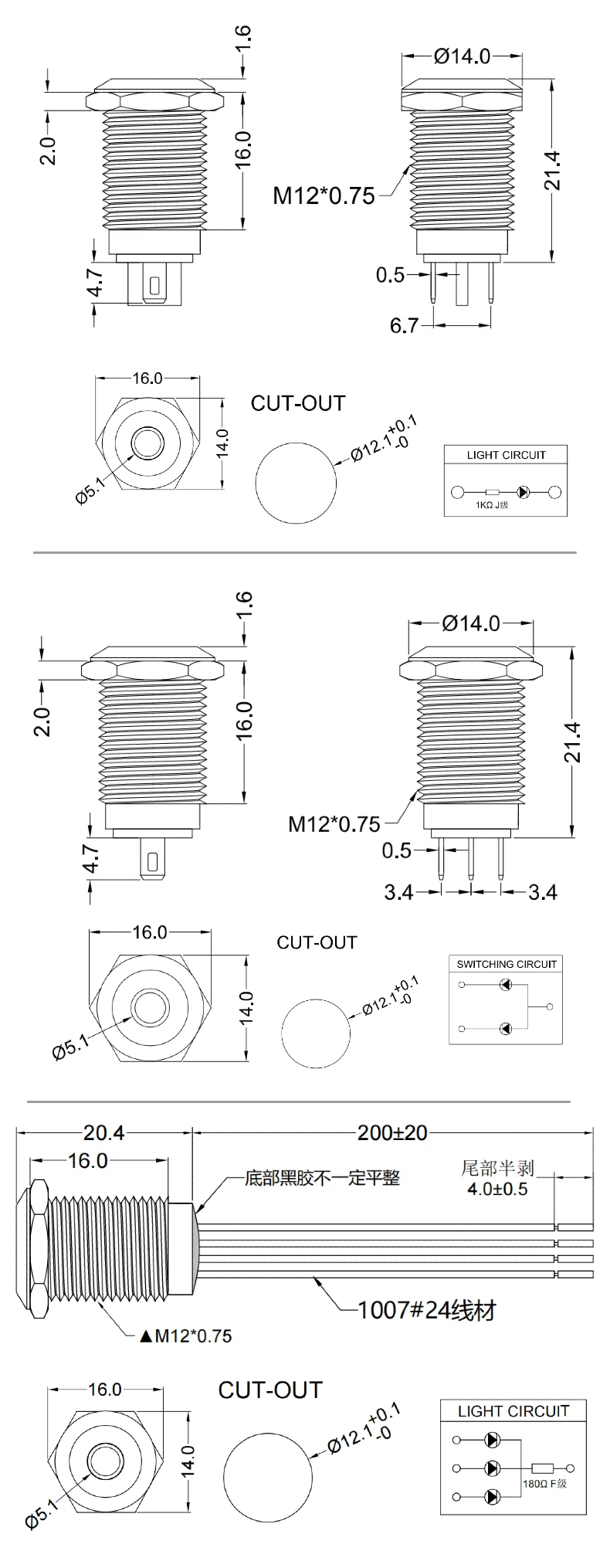 Solder Heat Resistance: 320℃(or 30W soldering iron) no more than 2 seconds)