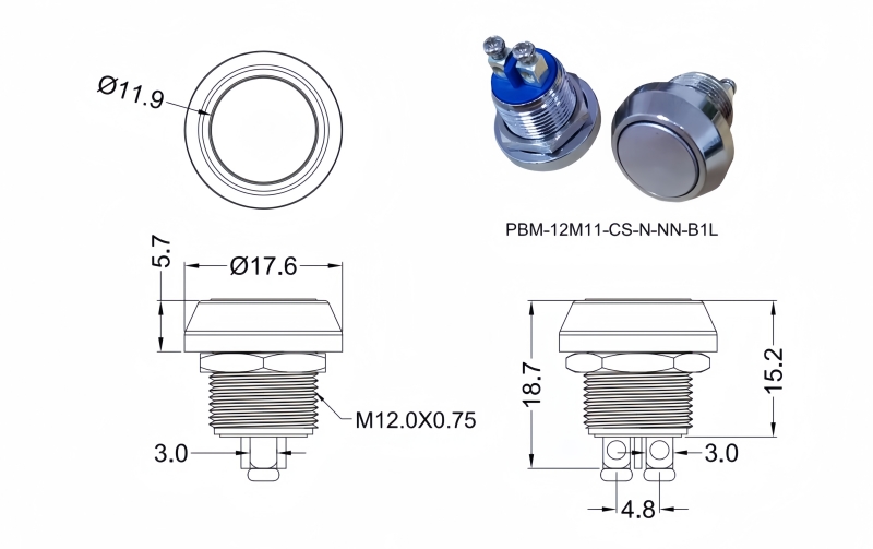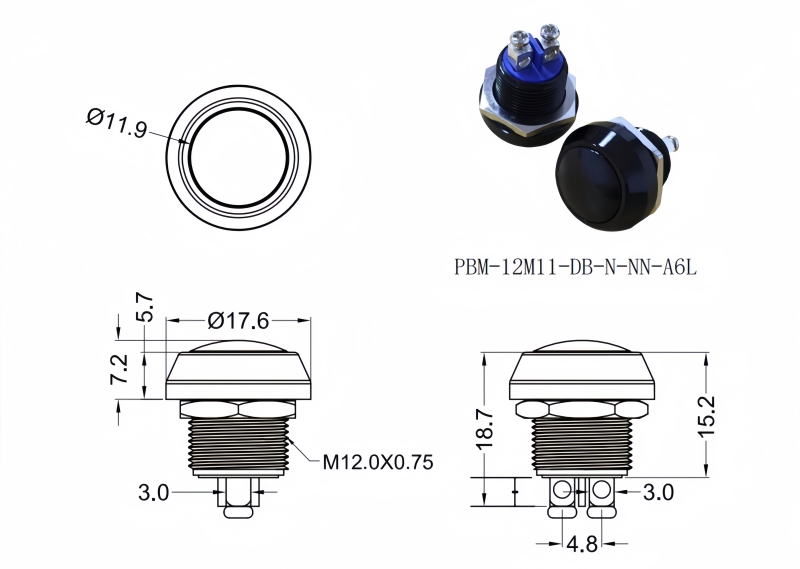 MATERIALS BUSHING : Stainless Steel / Nickel plated brass / Aluminum alloy BASE : PBT, PC ACTUATOR : PC ; Stainless Steel / Nickel plated brass / Aluminum alloy INNER ASSEMBLY : POM / PA66. SPRING : Spring steel. SEALING : Sillicone. O-Ring : Sillicone TERMINAL : Brass,with silver or gold plated. HEX NUT : Nickel plated brass |