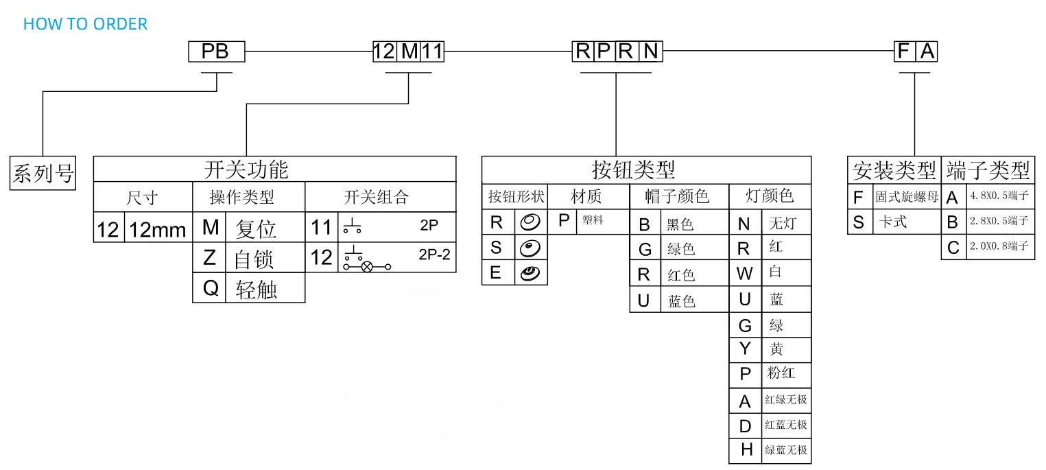 12mm Pushbutton Switches/PB-12M Series SAFETY/QUALITY APPROVALS IP65/ROHS