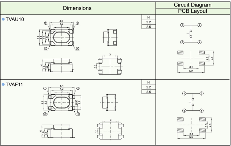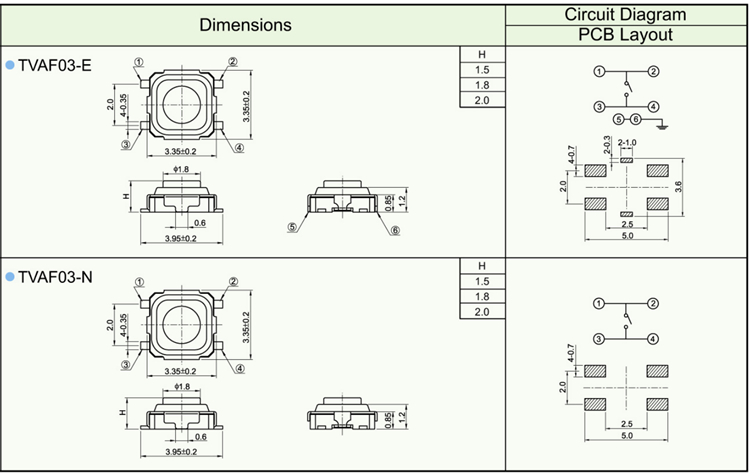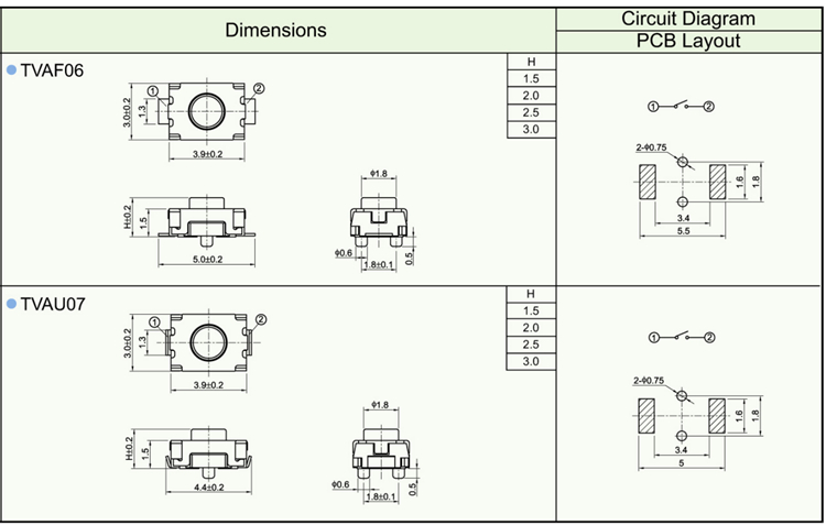 Features ※ Improve mounting density of components on PC board. ※ Reflow solderable ※ Sharp “click” feel with a positive tacile feedback ※ Packaged with a 12mm wide embossed taping.