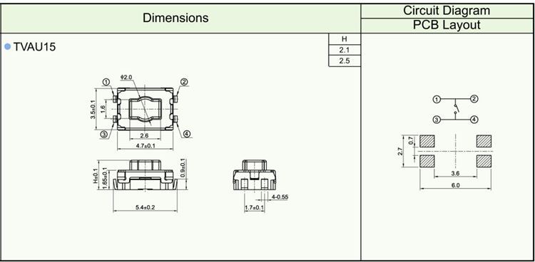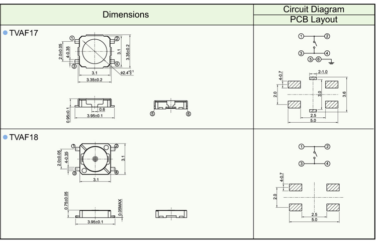 Tact Switches / TVA Series SAFETY/QUALITY APPROVALS ROHS