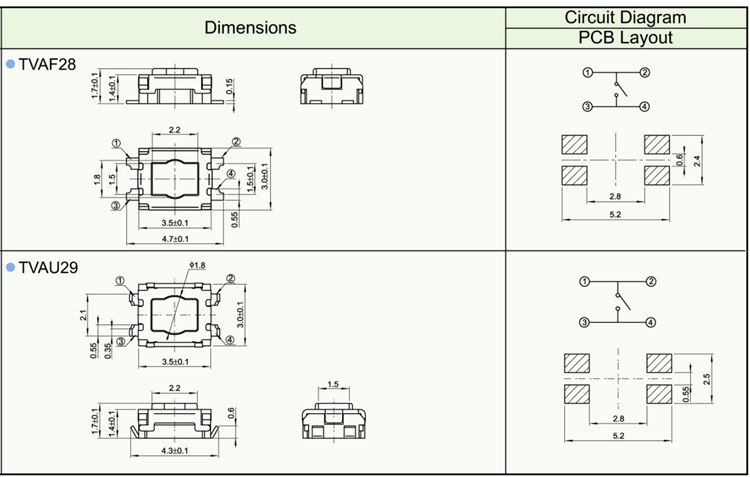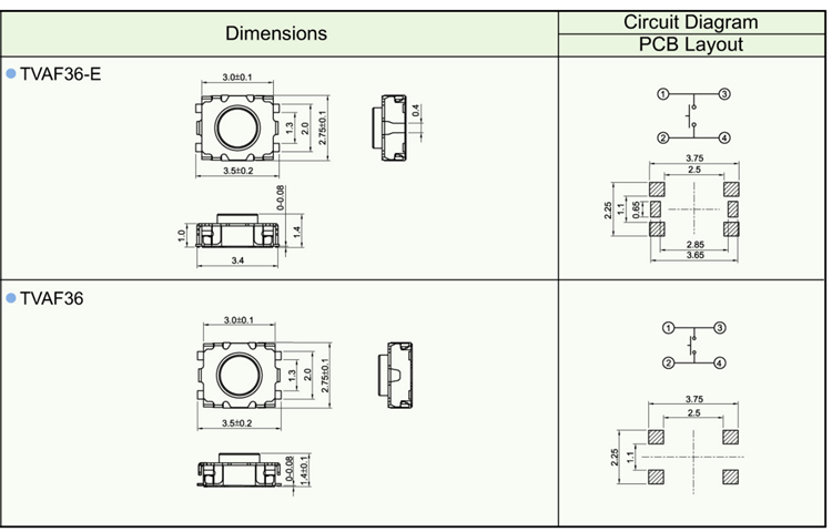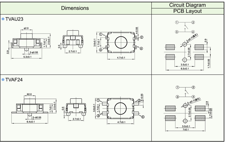 Tact Switches / TVA Series SAFETY/QUALITY APPROVALS ROHS