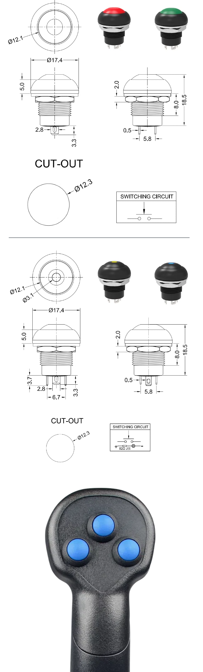 12mm Pushbutton Switches/PB-12M Series SAFETY/QUALITY APPROVALS TUV:IP68/ROHS