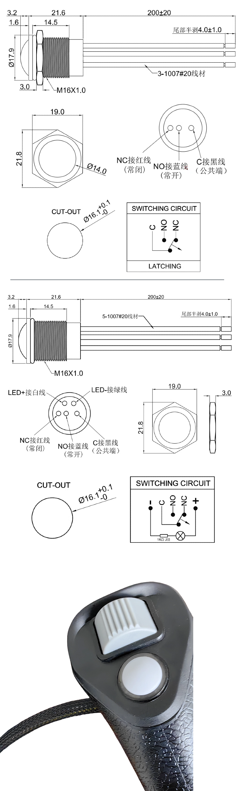 Metal Pushbutton Switches / PBM-16 Series SAFETY/QUALITY APPROVALS TUV:IP68/ROHS