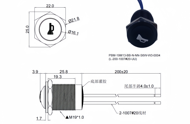 19mm手柄開關按鈕