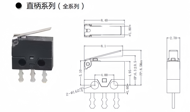 Contact Rating: DC 30V 3A DC15V 1A Electrical Life: 20,000cycles Operating Force:60gf MAX