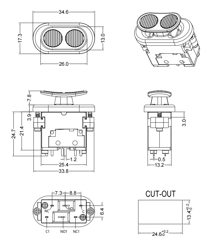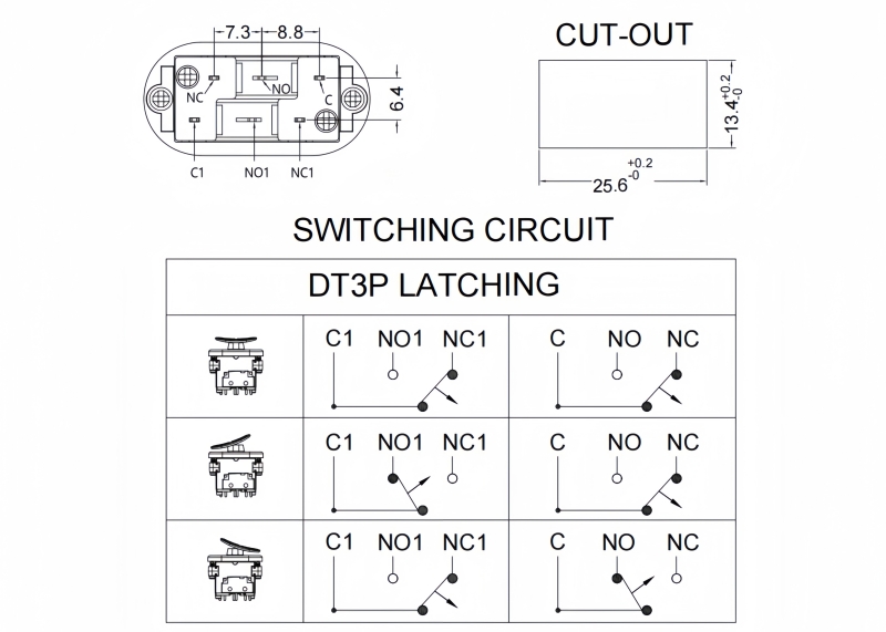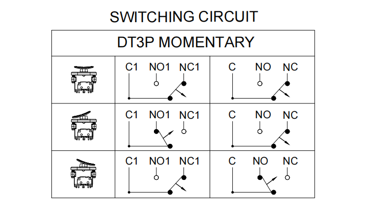 Contact Configuration: ON-OFF-ON (ON)-OFF-(ON )