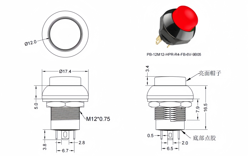 Function:ON-OFF Latching or (ON)-OFF Momentary