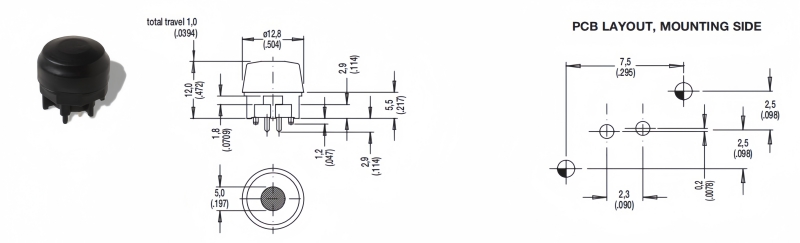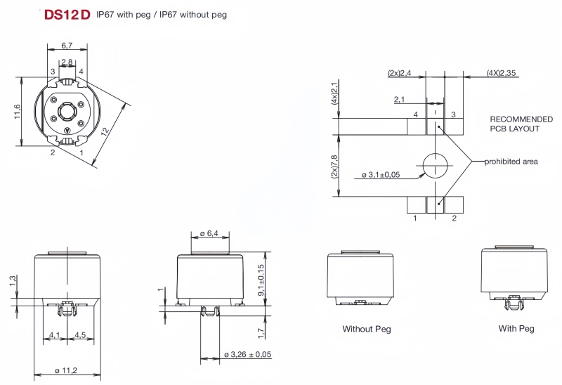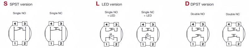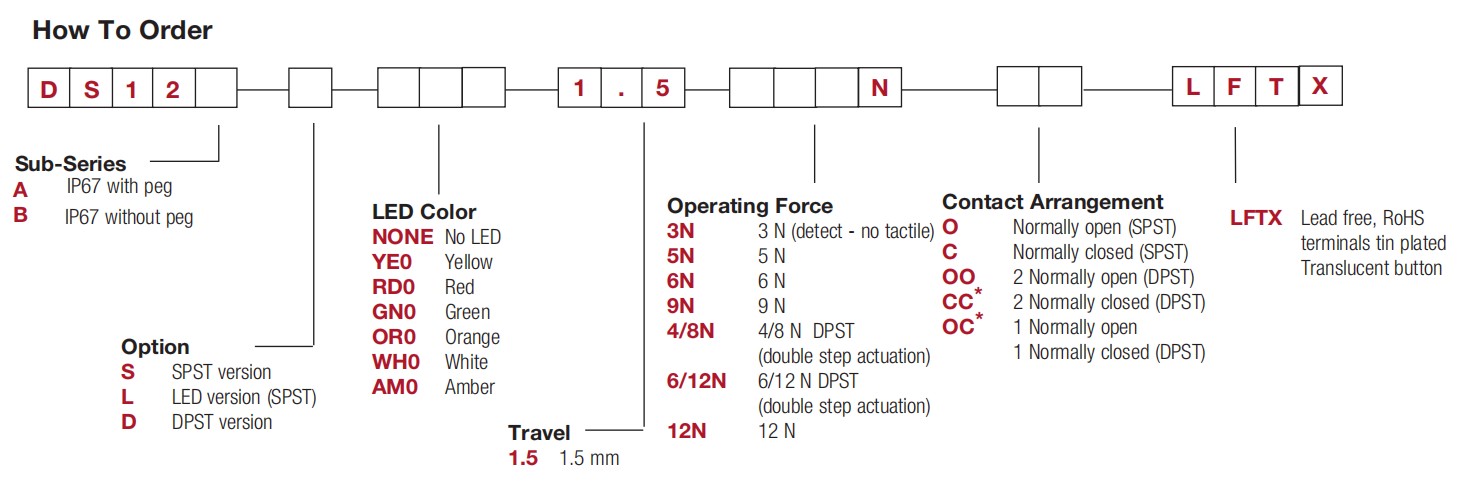 OPERATING FORCE: 3N; 5N; 6N; 9N 4/8 N; 6/12 N; 12 N SEALING: IP40 or IP67